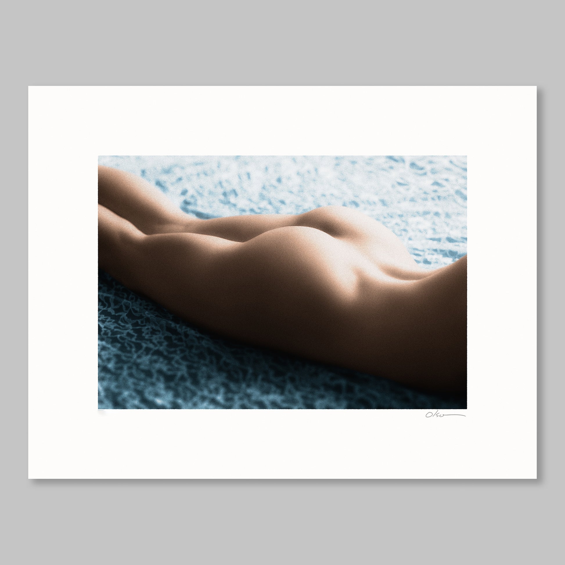 Lily and lace. Natural light. Fine art nude duotone color print.