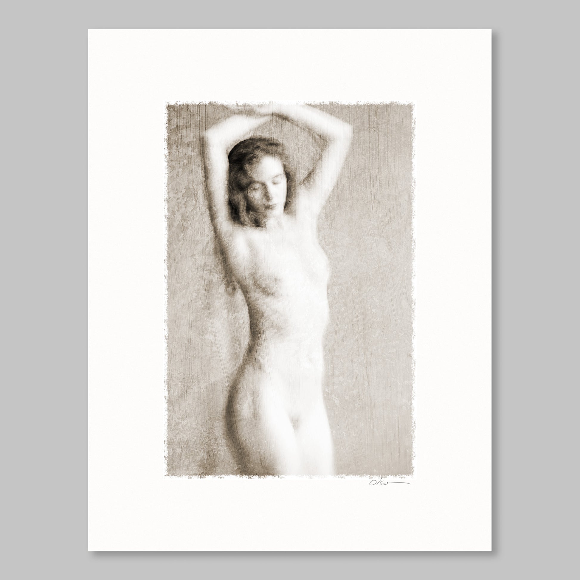 Soft and dreamy fine art nude composition. Model with gauzy scarf. Paper size 8.5 x 11 inches. Release date, 2024. Copyright © watermarks are online only. Find more information about studies on MCO Fine Art's Studies - About page.