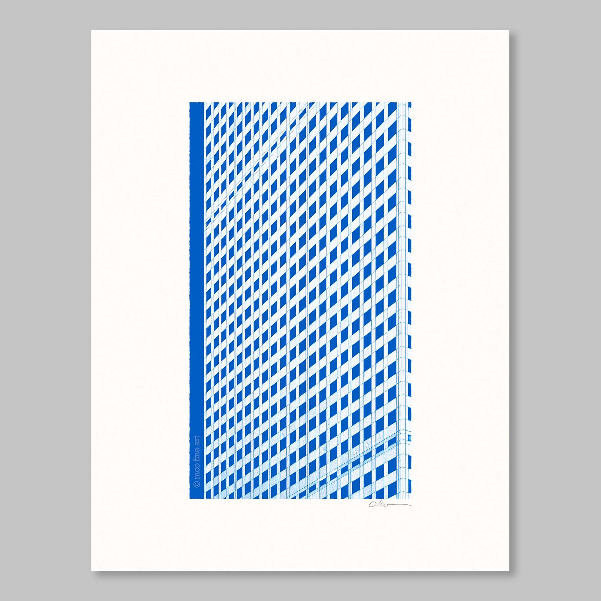 Windows. Geometric, abstract study in monochrome blue. 4.5" x 8".