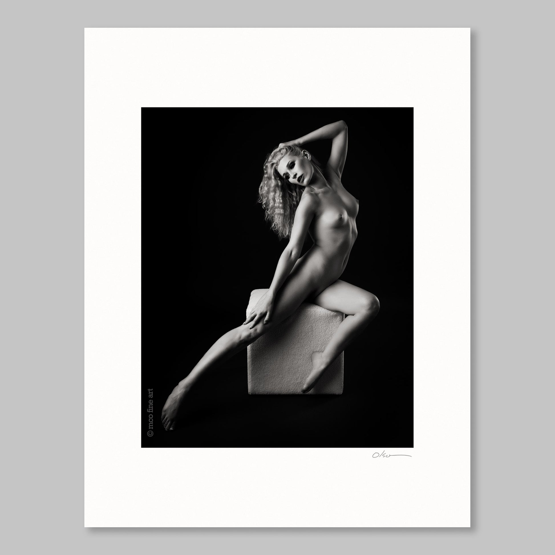 Dynamic, angular fine art nude pose in monochrome.
