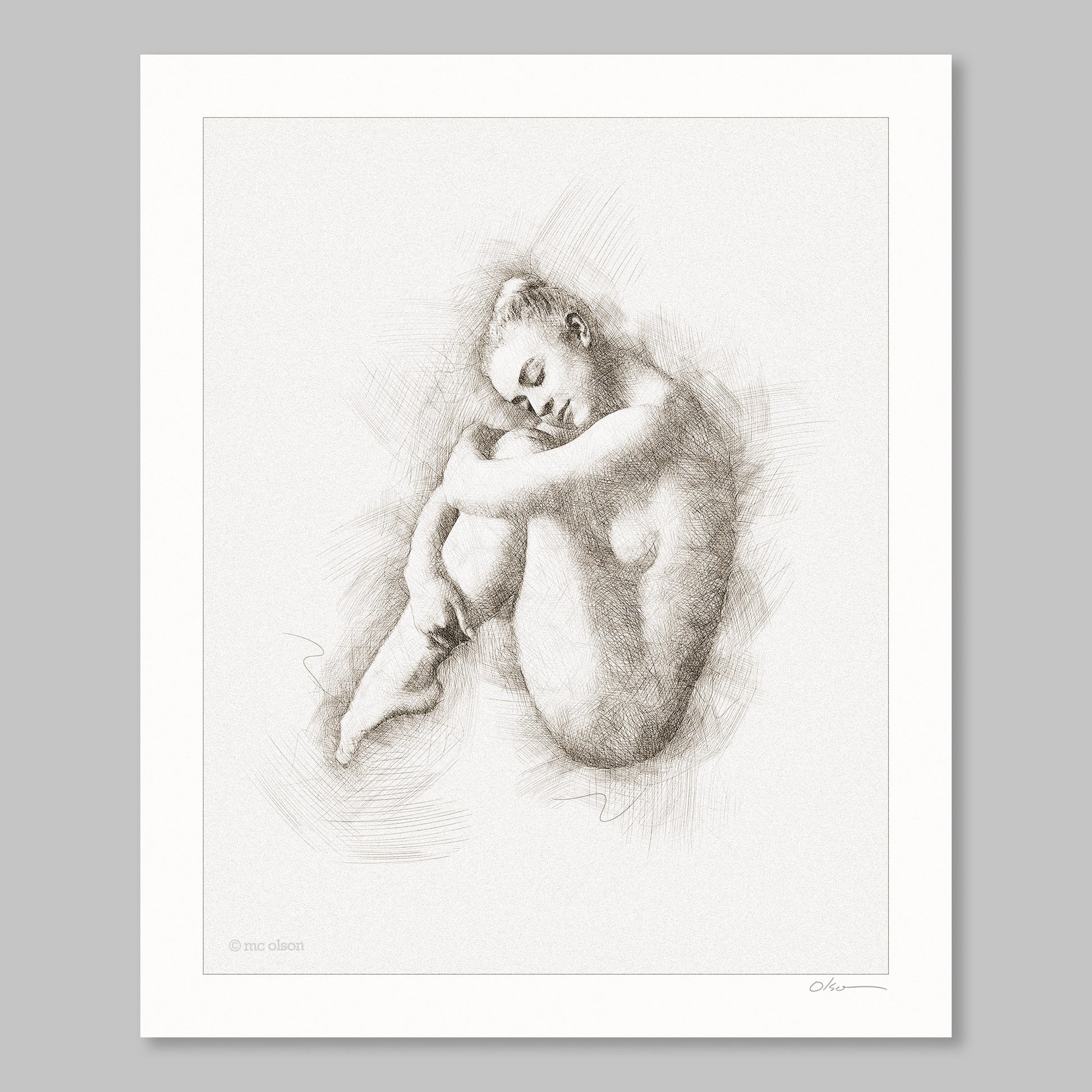 This is a light, airy composition with a sketchy look. Sepia tonality. Model, Lily.