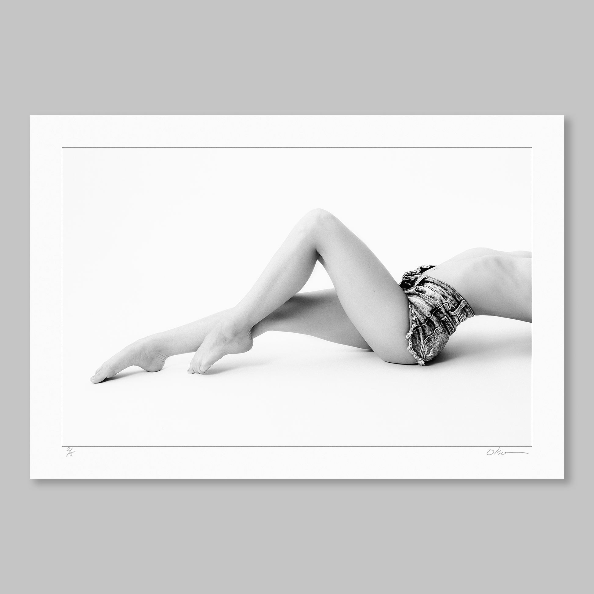 Model Ayeonna Gabrielle showing off her "cheeky shorts," as she referred to them, in this monochromatic, high key print. I love the left-right energy of this composition. AyeonnaGabrielle.com.
