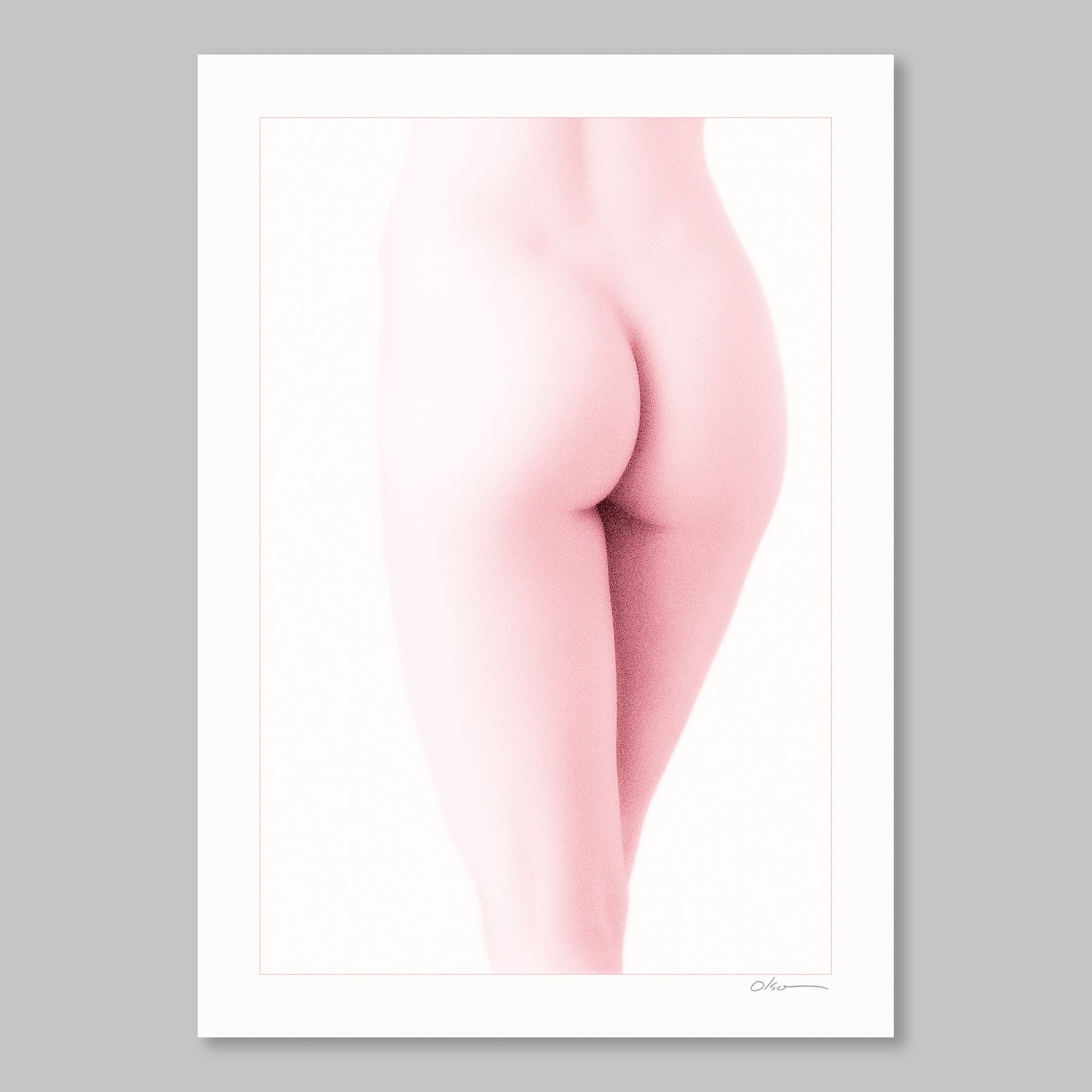 Minimalist fine art nude bathed in natural light. High key. Grain. Color print with pinkness.