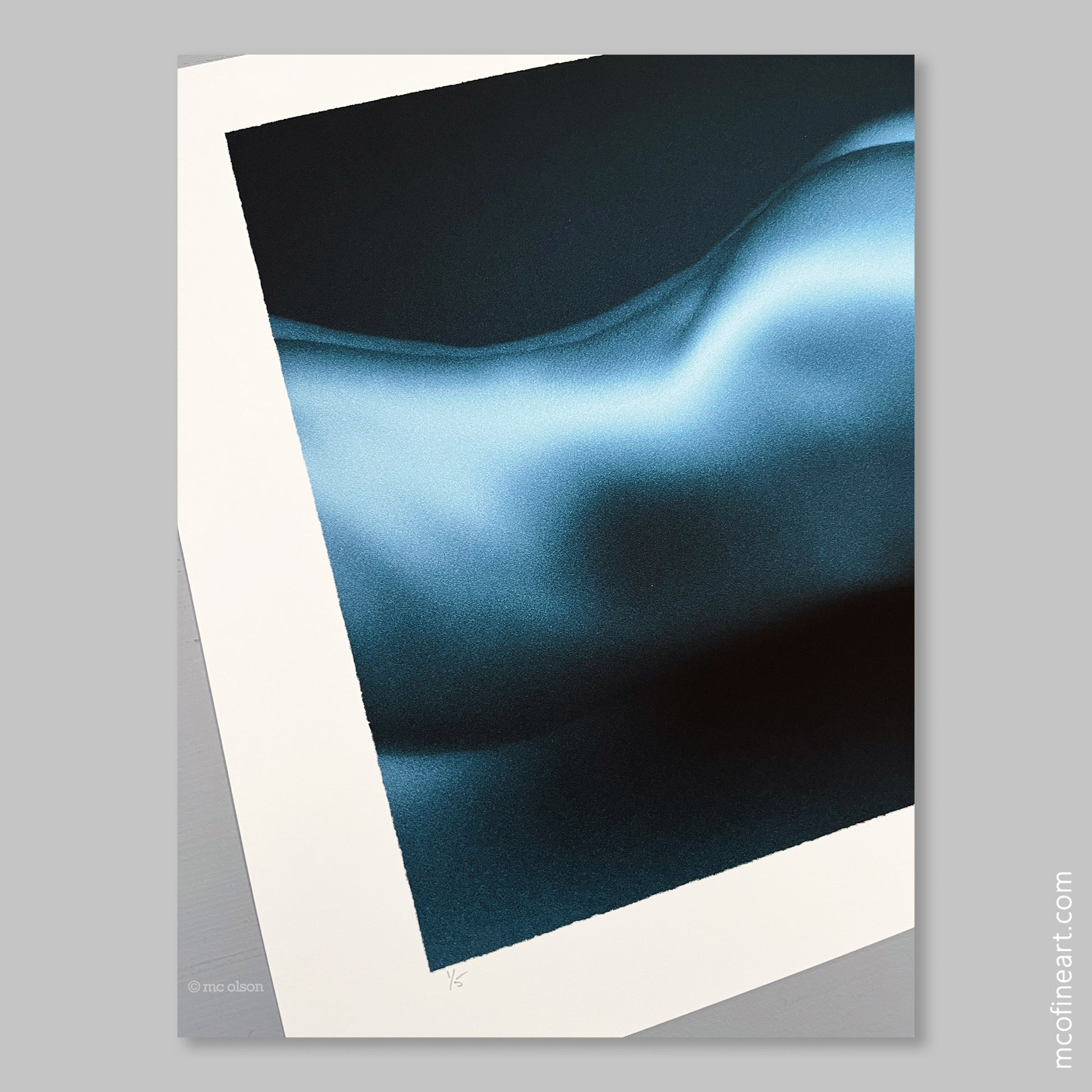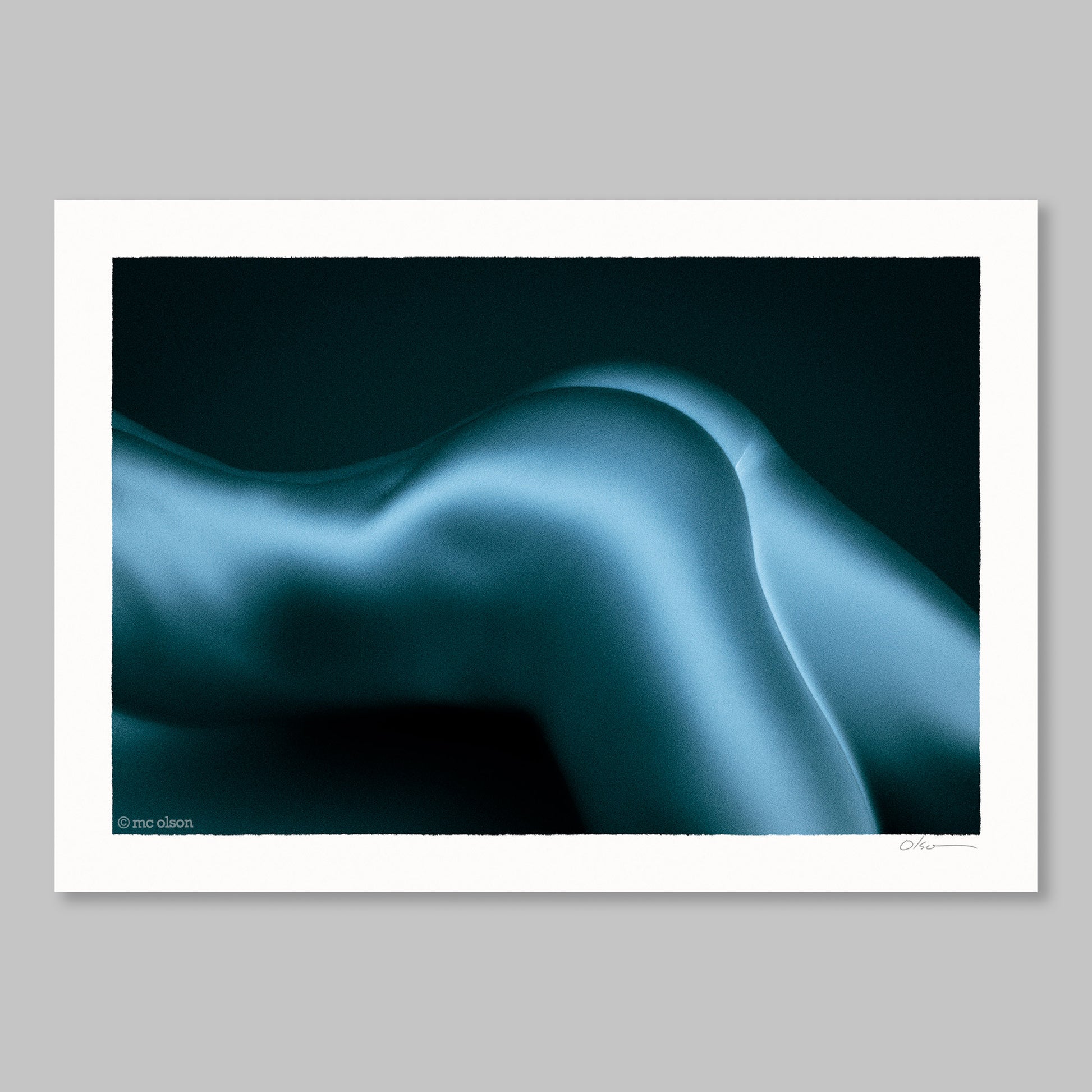 A somewhat minimalist fine art nude composition or bodyscape in cool, cyan-blue tonality.