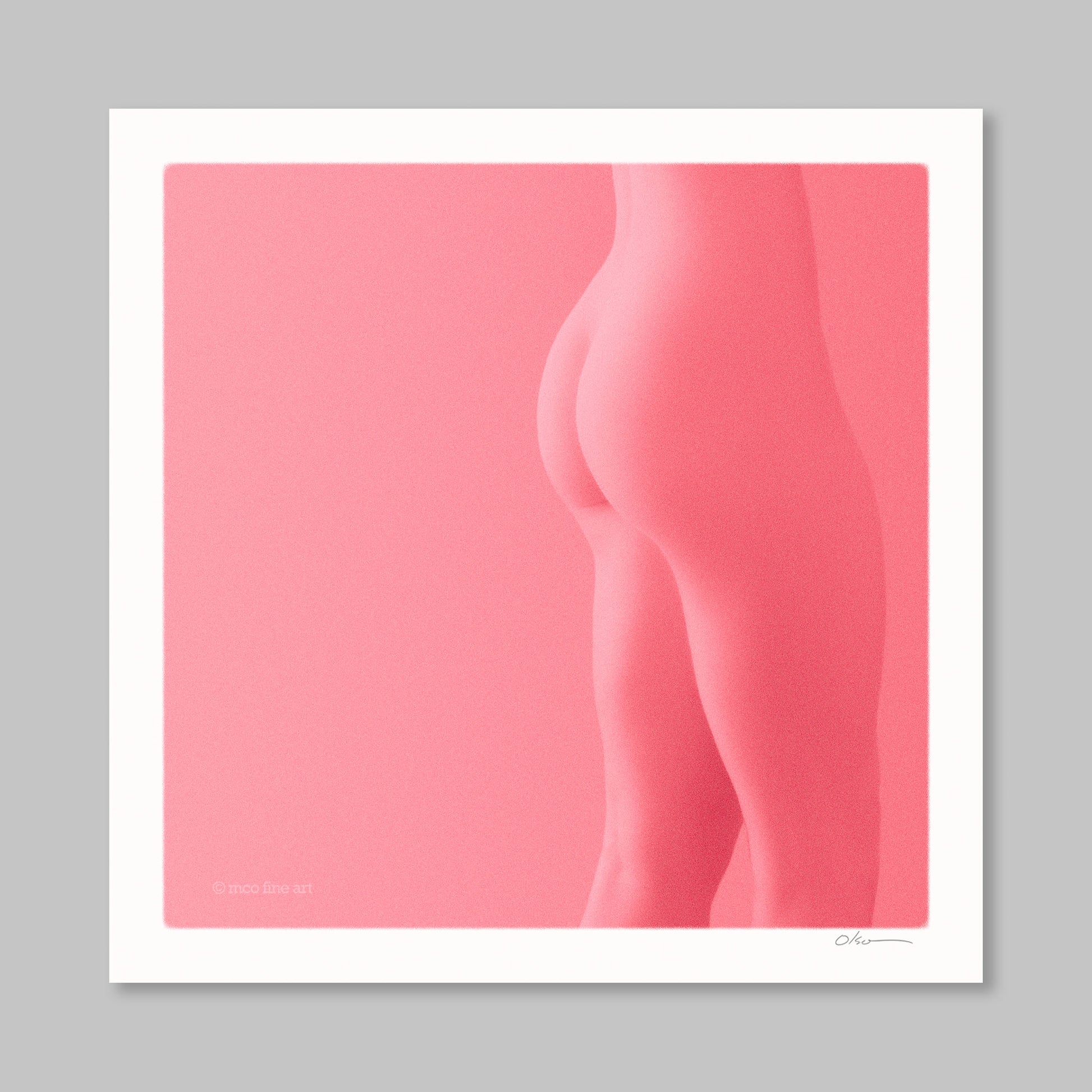 Soft geometry meets sensual minimalism in Fesses en rose, a study in tone, curve, and color. Rendered in rich blush hues, this piece invites introspection and intimacy, balancing abstraction with organic form. Part of an evolving series exploring the human figure through monochromatic palettes.