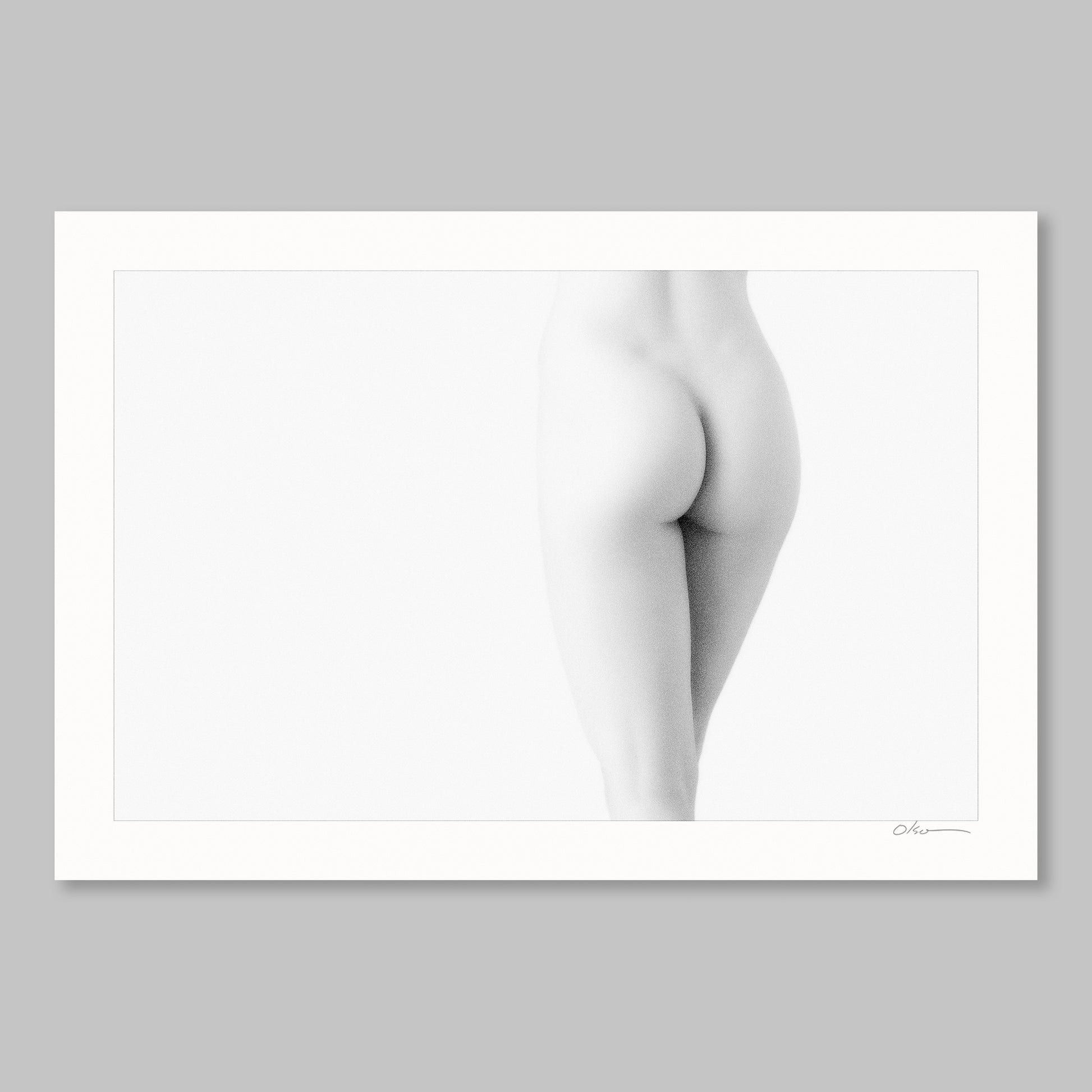 Minimalist fine art nude bathed in natural light. High key with grain. Monochrome.